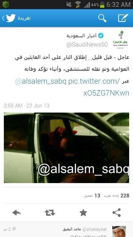 أستشهاد الشاب مرسي الذي تم أستهدافه في مساء يوم امس تم تأكيد استشهاد مرسي ال ربح بأسلحة كاتمة للصوت ويتلحق بركب شهدائنا الابرار ويفقد الحراك الشعبي احد اعمدته والذي طالب طيلة السنوات الفائته بحرية وكرامة المجتمع في ظل الجور والقمع والارهاب الذي يمارس على الطائفة الشيعية في الجزيره العربيه فهو احد اعمدة الحراك المطلبي في المنطقة الشرقيه قد اغتالته ايادي بيان وزارة الارهاب السعودية تورط في كثير من الأعمال الإجرامية الداخلية: وفاة المطلوب الأمني مرسي آل ربح بعد القبض عليه في العوامية عبدالله البرقاوي- واس - سبق- الرياض: صرح المتحدث الأمني بوزارة الداخلية بأن الجهات الأمنية قد رصدت مساء يوم السبت 13/8/1434هـ تواجداً في أحد المواقع ببلدة العوامية للمطلوب للجهات الأمنية على القائمة المعلن عنها بتاريخ 8/2/1433هـ مرسي علي إبراهيم آل ربح , وهذا المطلوب سبق وأن تورط في كثير من الأعمال الإجرامية التي استهدفت مواطنيه وأبناء بلدته بما في ذلك مشاركته في إطلاق النار على مواطنين ورجال أمن أسفرت عن مقتل بعضهم وإصابة البعض الأخر , وعند مباغتته من قبل قوات الأمن له حاول الفرار فتم التعامل معه وفق ما يتطلبه الموقف ونتج عن ذلك إصابته حيث نقل إلى المستشفى وتوفي لاحقاً متأثراً بإصابته . وأكد المتحدث الأمني أن قوات الأمن التي لن تتوانى في ملاحقة المطلوبين والمفسدين في الأرض لتثمن وتقدر التعاون والدعم الذي تلقاه من أبناء المنطقة في متابعة المطلوبين وتطبيق النظام بحقهم , وفي الوقت ذاته تدعو من تبقى من المطلوبين على هذه القائمة وعددهم عشرة إلى المسارعة في تقديم أنفسهم للجهات الأمنية وإيضاح حقيقة موقفهم ، وسوف يؤخذ ذلك في الاعتبار عند النظر في أمرهم. والله الهادي إلى سواء السبيل. |