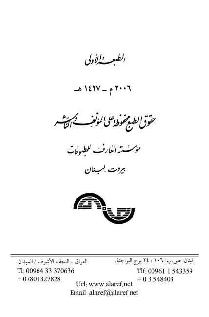 اللهم صل على محمد وآل محمد المصادر والمراجع هناك مصادر الكتاب يجب وضعها قبل التسلسل في عرض نص الكتاب لأن المؤلف يرجع إليها كثيرا في الهامش دون ذكر اسم المؤلف أحيانا أو ذكر الطبعة والمطبعة وتاريخ الطباعة ولذلك يتوجب الرجوع إليها للتوثيق وقد ذكرها في الجزء الرابع من الكتاب http://www.hajr-up.info/download.php?id=8799 وكذلك هناك ملحقات تصب في نفس الغاية الملحقات آثار السيد الشهيد الصدر قدس سره ابرز طبعات كتبه موسوعة تراث الشهيد الصدر ما كتب عن السيد الصدر تواريخ دروسه الاصولية تلامذة السيد الصدر قدس سره http://www.hajr-up.info/download.php?id=8800 ملحق الصور وهناك ملحق الصور منها صور ملونة للسيد الشهيد وصور اخرى للعلماء رحمهم الله تعالى جاءت في الجزء الخامس من الكتاب http://www.hajr-up.info/download.php?id=8801 وفقكم الله تعالى ونسألكم الدعاء وبانتظار الباقي ان شاء الله تعالى |