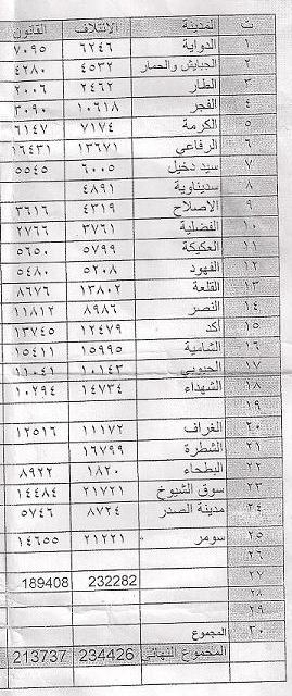 السلام عليكم ورحمة الله وبركاته ادناه جدول بنتائج الائتلافين في محافظة ذي قار .... http://www.yahosein.com/vb/attachmen...1&d=1268327220 يلاحظ عدم ورود نتائج ائتلاف المالكي في منطقتين بالرقم 8 و 21... حيث وردت نتيجة المنطقتين مجتمعة فتم جمعها مع الناتج النهائي ! علما ان هذه النتائج لاتشمل التصويت الخاص ! |