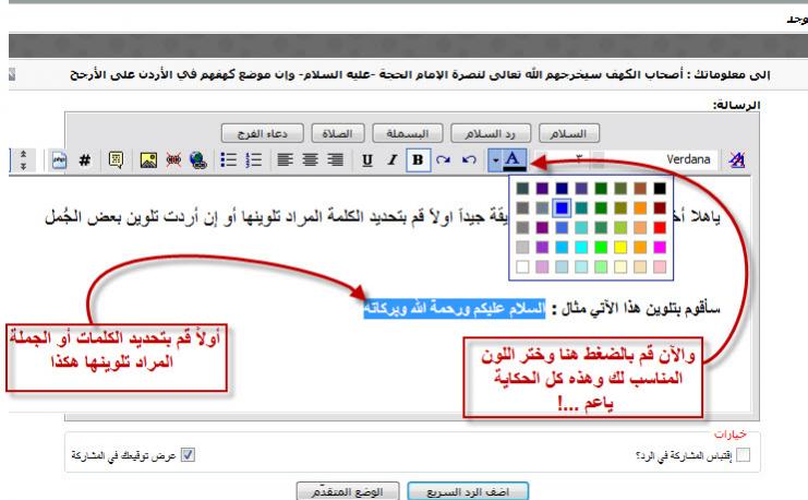 ياهلا أخي الطريقة سهلة تابع الطريقة جيداَ اولاَ قم بتحديد الكلمة المراد تلوينها أو إن أردت تلوين بعض الجُمل