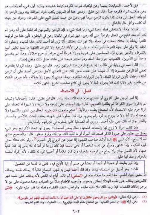 فصل في الاستمناء ص 602 قال : للنساء
