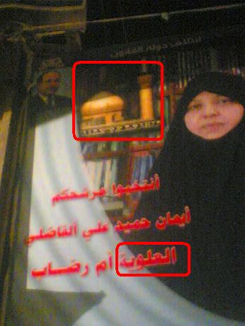 هذه (العلوية)!!! ترفع خلفها صورة المالكي مع مرقد امير المؤمنين ع !!
