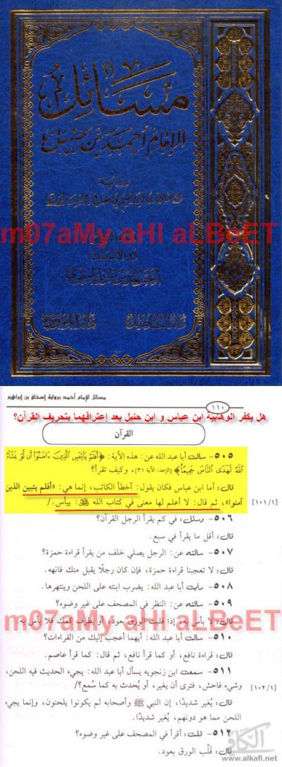 احمد ابن حنبل يقول ان القران لايعجبه فليكفره الوهابية دفاعا عن كلام الله
