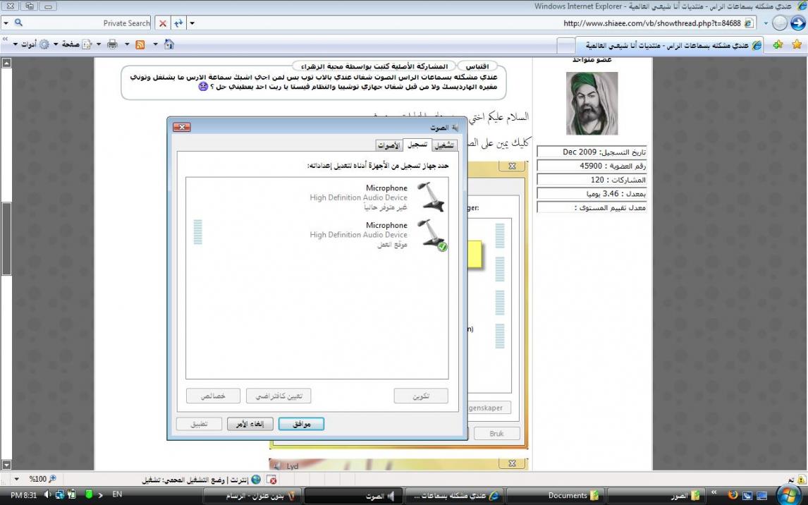 كليك يمين على الصوت اختاري الضبط