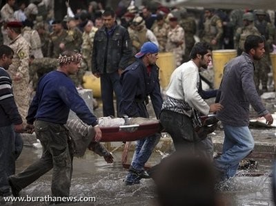لا أجد شيئ لأقوله الليلة ولكن لي عودة حتى نتكلم قليلاً وإن لم يسمعنا أحد يكفي أن نسجل موقف لنصرة الشهداء في هذه الشبكة ويكفي أن نقول ما في قلوبنا من آلام و لوعة ، ويكفي أن نصرة المظلوم واجبة فإن لم نستطيع باليد فبالسان . . . شاهد يا سيد القانون الذي جعلت كلاب البعث يلعبون به كيفما يشاؤون هذا القانون يرمونه بوجهك بخمس تفجيرات وبخمس سيارات وبخمس أماكن متفرقة ليقولوا لك لا تضحك على نفسك بالقانون فقانونك لا يمشي علينا ، وها نحن نعيدها للمرة الثالثة خلال 4 أشهر تقريباً ولم تخيفنا تهديداتك بالمحكمة الدولية وكلامك الفاضي ، هذا هو لسان حال كلاب البعث والمصفقين لهم . . . http://www.burathanews.com/media/pics/1260292147.jpg طفلتان تتوجعان من الالم ... الا لعنة الله على الظالمين لا تنفع الكلمات لتعزي ازاء ما حصل اليوم من تفجيرات ارهابية سرقت ارواح الاطفال والنساء والشباب ولكن هذه الصور ستتكلم عن مدى الحقد الذي يضمره البعثيين والتكفيريين ضد الشعب العراقي الصابر وضد بغداد المظلومة ... نترككم مع هذه الصور المؤلمة لتكون دليلا جديدا لحقد المجرمين . http://www.burathanews.com/media/pics/1260292241.jpg http://www.burathanews.com/media/pics/1260292279.jpg http://www.burathanews.com/media/pics/1260292320.jpg http://www.burathanews.com/media/pics/1260292352.jpg http://www.burathanews.com/media/pics/1260292384.jpg http://www.burathanews.com/media/pics/1260292426.jpg http://www.burathanews.com/media/pics/1260292464.jpg http://www.burathanews.com/media/pics/1260292543.jpg http://www.burathanews.com/media/pics/1260292586.jpg http://www.burathanews.com/media/pics/1260292629.jpg http://www.burathanews.com/media/pics/1260292663.jpg http://www.burathanews.com/media/pics/1260292709.jpg http://www.burathanews.com/media/pics/1260292745.jpg http://www.burathanews.com/media/pics/1260292782.jpg http://www.burathanews.com/news_article_81770.html ملاحظة : حتى الشرقية وضعت شريط أسود في شاشتها ما عدا العراقية كأن الأمر لا يعينها أساساً وكأن اليوم أصبح شيئ اعتيادي . . . |