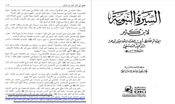 روى ابن كثير في السيرة مايلي : (وثار المشركون على ابي بكر وعلى المسلمين فضُربوا في نواحي المسجد ضربا شديدا ووطئ ابوبكر وضُرب ضربا شديدا ودنا منه الفاسق عتبة ابن ربيعة فجعل يضربه بنعلتين مخصوفتين ويحرفهما لوجهه ثم ونزا على بطن ابي بكر حتى صار لايعرف وجهه من انفه) (انتهى) ...السيرة النبوية لابن كثير ضرب بالنعال حتى لايعرف وجهه من أنفهhttps://www.yahosein.com/vb/core/ima...es/biggrin.gif ؟؟ أين شجاعة ابوبكر التي يتحدثون عنها ؟؟ الوثيقة : https://www.yahosein.com/vb/filedata...9&d=1663300575 https://www.yahosein.com/vb/filedata...0&d=1663300575 نعلتين مخصوفتينhttps://www.yahosein.com/vb/core/ima...es/biggrin.gif: |