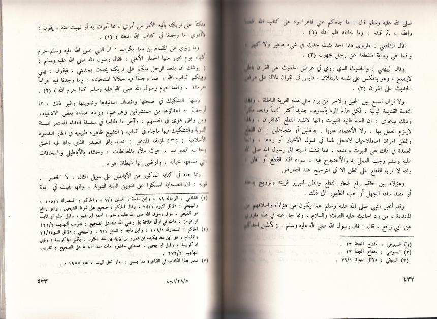 وفي يوم جمعة من عام 2011 كنت في شارع المتنبي اتفرج على ما معروض من كتب متنوعة فوقعت عيني على كتاب (الامام الزهري واثره في السنة) وهو يمثل رسالة الدكتوراه للشيخ حارث الضاري في جامعة الازهر للعام 1978 باشراف الدكتور محمد سيد ندا وقد قراته من باب الفضول لاهتمامي البسيط بعلم الحديث ورجاله حتى وصلت الصفحات 433 - 432 - 434 - 435 - 436 - 437 والتي ساوردها مصورة لانها طويلة مع صورة الكتاب ...... وصلى الله على محمد وال محمد ونسالكم الدعاء