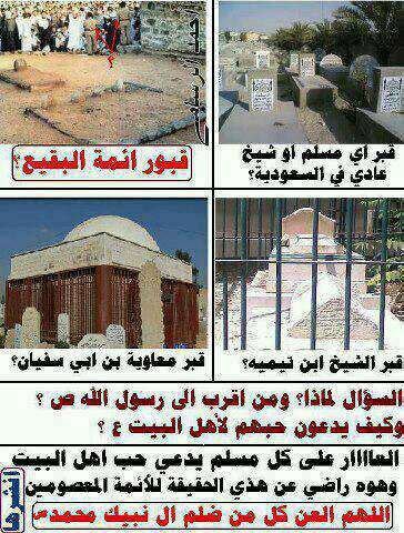 بالم كبير استقبل المسلمين خبر نبش مرقد الصحابي الجليل راهب اصحاب محمد صلى الله عليه واله حجر بن عدي الكندي /حجر الخير/ من قبل ثله من طلائع جيش السفياني الدجال عليهم لعائن الله وغضبه بحجه والله تظحك منها الثكلى بزعمهم ان الرافضه تاتي اليه وتسجد له وتشرك بالله وهو كذب وافتراء على المؤمنين -السؤال اذا ماتدعون لنفرض صحيح ماهو ذنب حجر رضي الله الذي يقول عليه التاريخ انه كان يصلي لله كل يوم 1000 ركعه صوام قوام لكي تنتهك حرمته -- على قانونكم ان نبش قبر النبي عيسى على نبينا وعليه افضل الصلاة واتم والتسليم حلال طيب لان النصارى تعبده -ولكن الله اخفاه مثلما اخفى كثير من قبور الانبياء والصالحين لان علام الغيوب الله عزوجل يعلم ان في اخر الزمان سياتي هؤلاء اصحاب العقول العفنه الذين لم يتركوا حرمه لله الاوانتهكوها --------- العجيب بالامر كله ان اقوى حججهم على الاماميه التي طالما طيلوا عليها وزمروا ان مهديهم عليه افضل الصلاة واتم التسليم سينبش قبري ابو بكروعمر-وسيحرقهما كعجل بني اسرائيل ويتباكون على ذالك