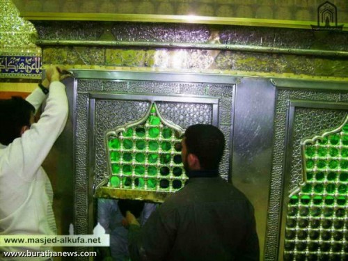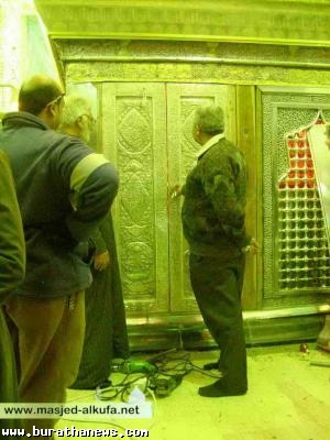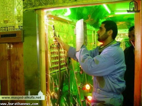 تبديل باب الشباك الخاص بسيدنا مسلم بن عقيل (ع) (تقرير مصور)