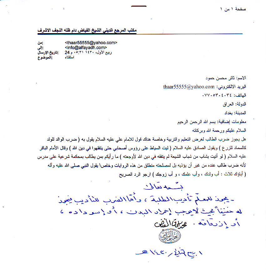 ارجو قرؤأءة مص فتى المرجع الفياض دام ظله