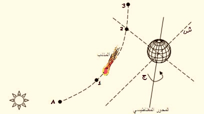 أولاً:* من الموقع*A*إلى 1 يحدث تجاذب بين الأقطاب يؤدي إلى سرعة دوران الأرض حول محورها.