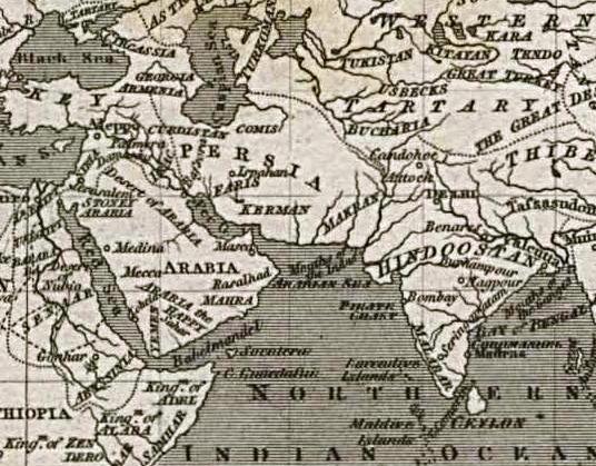 خريطه من اواخر القرن ال16 ولقدم الخريطه بالكاد يمكن قراءة اسم الخليج الفاسي من اسفل اليمين