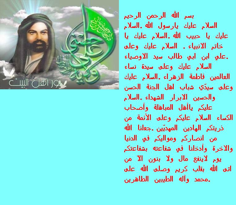 السلام عليكم والصلاه والسلام علي سيد البشر سيدنا رسول الله واله الاطهار وعلي سيدتنا ام المؤمنين ام الزهراء الطاهره والحمد لله ع