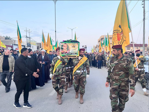 الحشد الشعبي يشيّع الشهيد ناجي الدراجي الذي ارتقى إثر العدوان الصهيوأمريكي على القائم