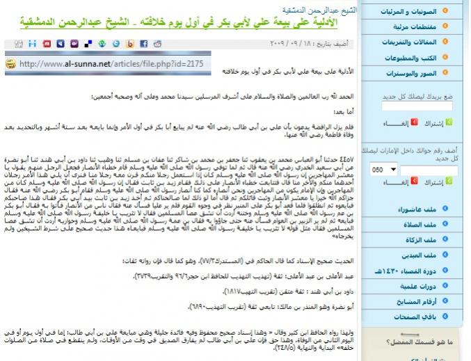 و كذلك شاهدت هذا الموضوع ايضاً في موقع خاصة يرد فيه الدمشقية على الشيعة أعلى الله برهانهم