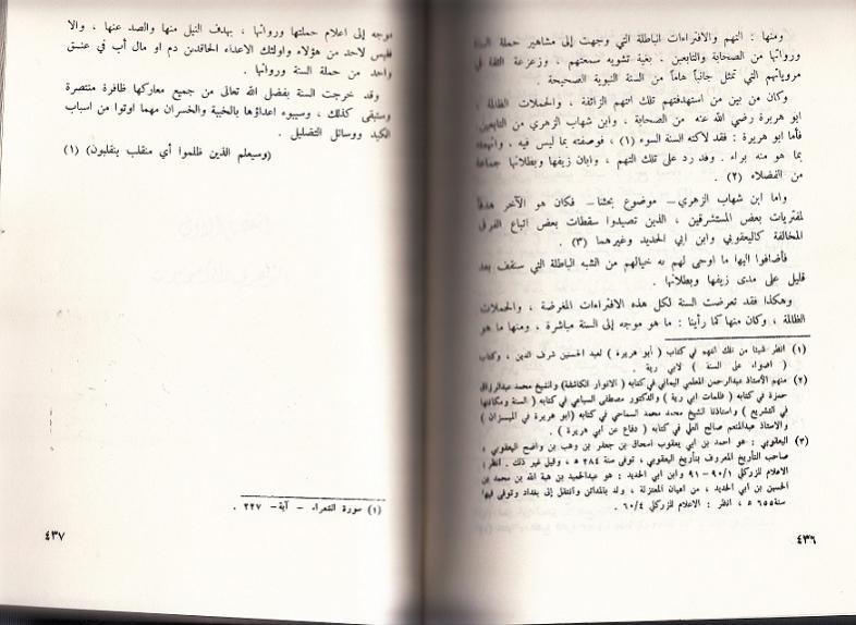 وفي يوم جمعة من عام 2011 كنت في شارع المتنبي اتفرج على ما معروض من كتب متنوعة فوقعت عيني على كتاب (الامام الزهري واثره في السنة) وهو يمثل رسالة الدكتوراه للشيخ حارث الضاري في جامعة الازهر للعام 1978 باشراف الدكتور محمد سيد ندا وقد قراته من باب الفضول لاهتمامي البسيط بعلم الحديث ورجاله حتى وصلت الصفحات 433 - 432 - 434 - 435 - 436 - 437 والتي ساوردها مصورة لانها طويلة مع صورة الكتاب ...... وصلى الله على محمد وال محمد ونسالكم الدعاء