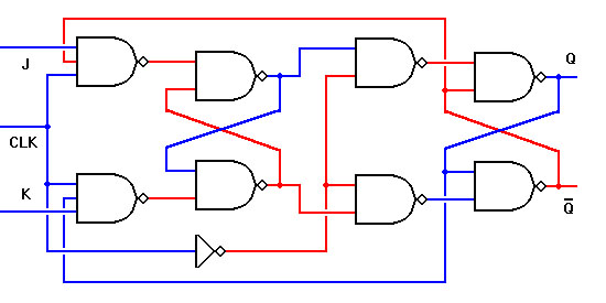 In most ways, the JK flip-flop behaves just like the RS flip-flop. The Q and Q' outputs will only change state on the falling edge of the CLK signal, and the J and K inputs will control the future output state pretty much as before. However, there are some important differences.