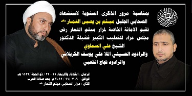 بمناسبة حلول ذكرى استشهاد الصحابي الجليل ميثم التمار (رض) بتاريخ (( 22 ذو الحجة))