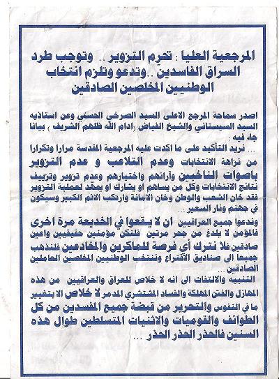مع اني اعتقد انها وصلت للمراجع العظام لكثرة ماوزعت ثم اني رايت الكثير من طلبة العلوم الدينية اضافة الى العامة من الناس يرفعون ماانتشر منها على الارض لئلا تداس الاسماء المقدسة التي وردت فيه كلفظ الجلالة مثلا!