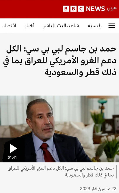 وهناك تصريحات ومقاطع مسجلة لحاكم قطر السابق يبين ذلك